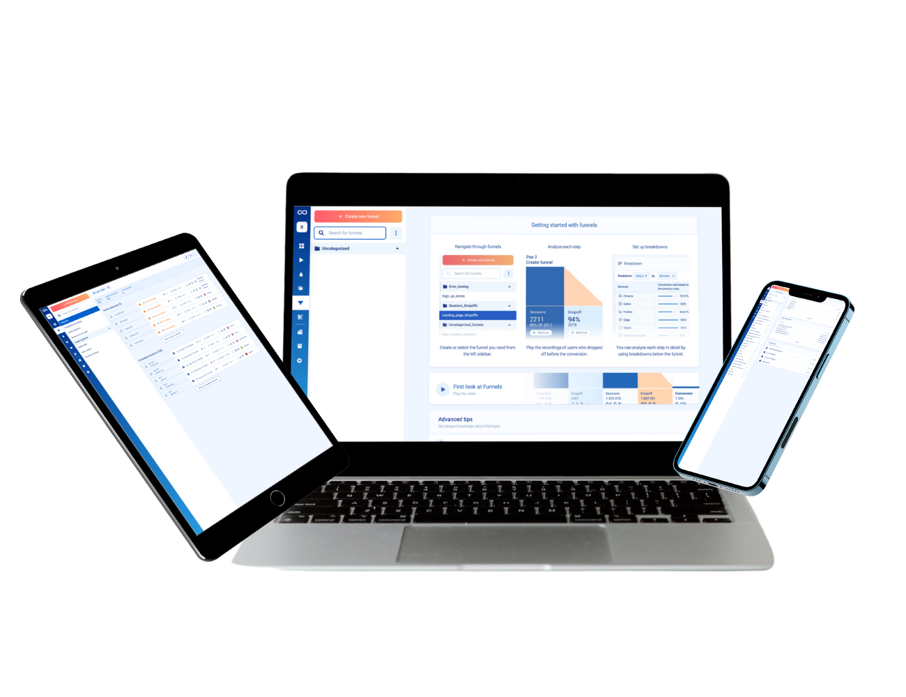 Funnel your data in a convenient and simple way. The funnel features gives you a breakdown of all your data points and lets you see any possible trends.